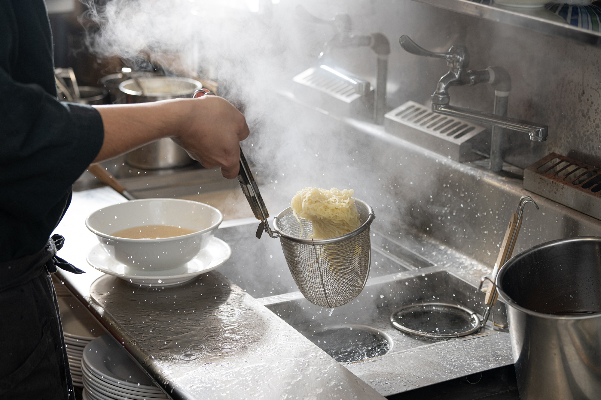 岩葉拉麵的湯頭是從豬骨、雞骨、豬皮、豬板油等,經由長時間熬煮(10~12小時)及攪拌,熬煮出濃郁滑口的乳白色高湯,在熬煮的過程需不定時翻動鍋內的湯水及食材,幫助湯中蛋白質、脂肪、水等混合,滋味更相融,熬煮出滑順濃郁的日式高湯。